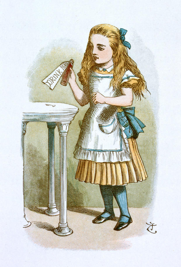 Some have suggested that the README name is a play on Lewis Carroll’s “Eat Me” and “Drink Me” scene from Alice’s Adventures in Wonderland. Image source: 150 years of “Alice in Wonderland”
