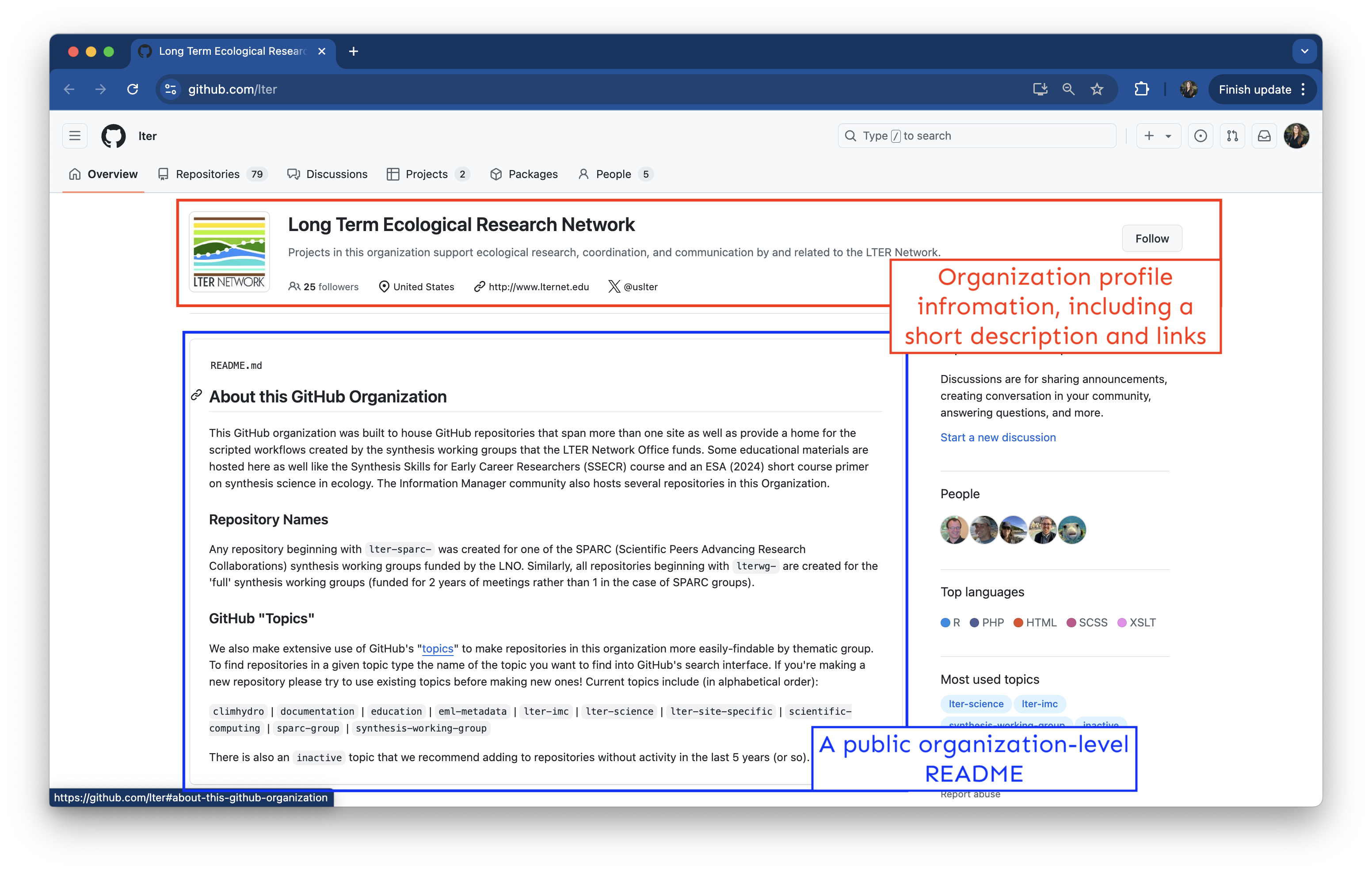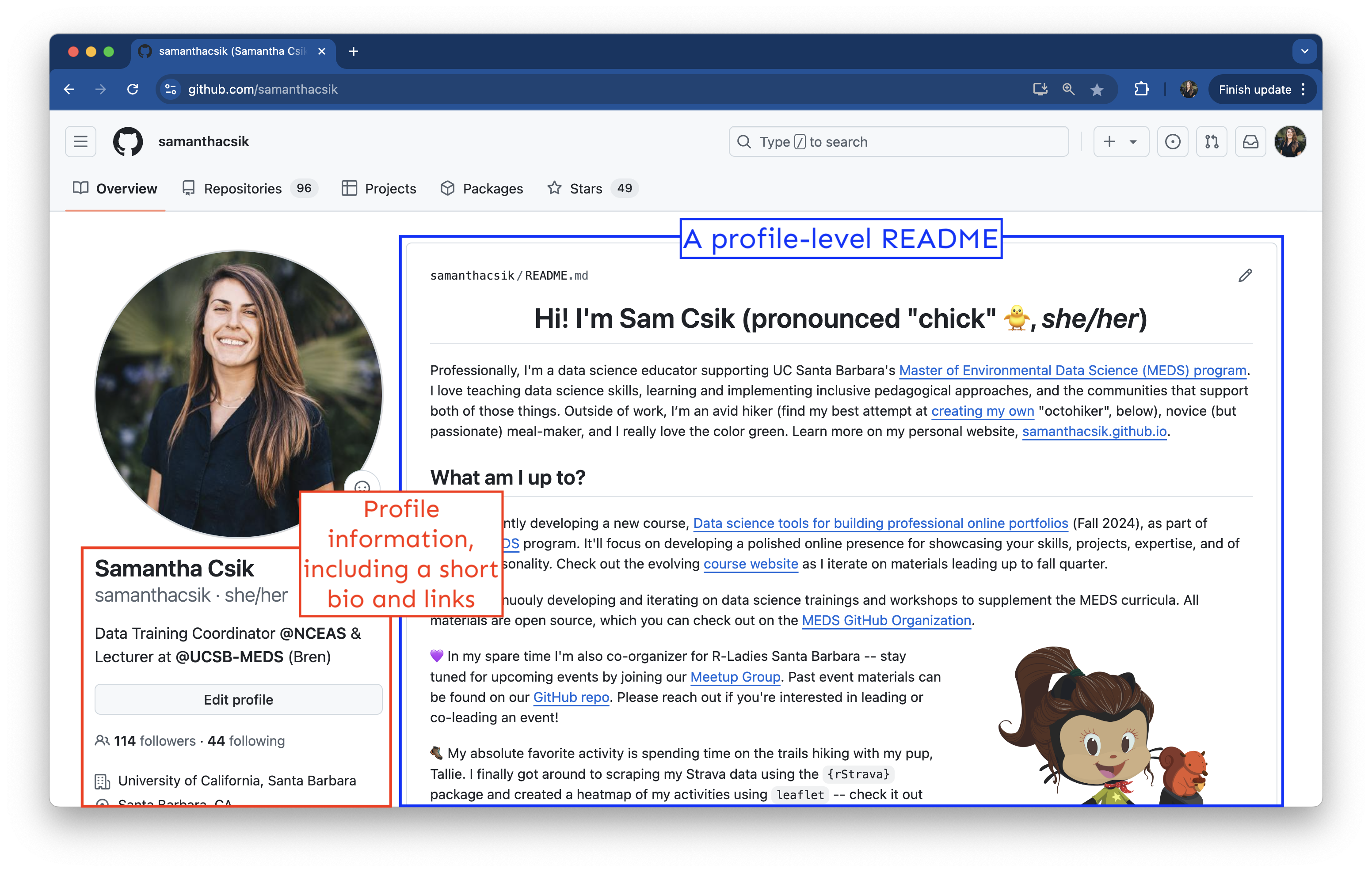 READMEs aren’t just for repositories – we can create account-level READMEs to introduce individual users or organizations: