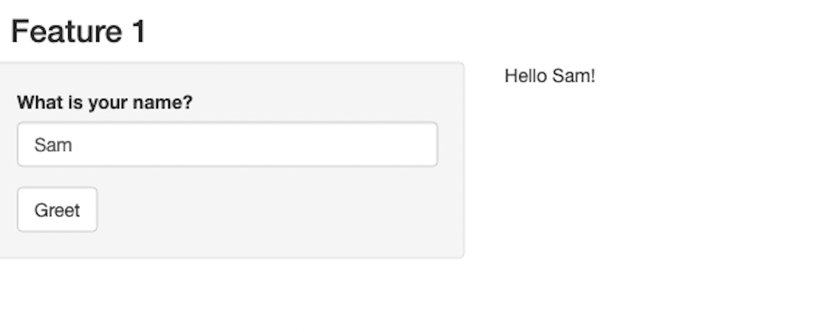 Our test failed, despite the behavior of our test subject not changing (in other words, our test failed, even though the expected output, “Hello Sam!” stayed the same.)