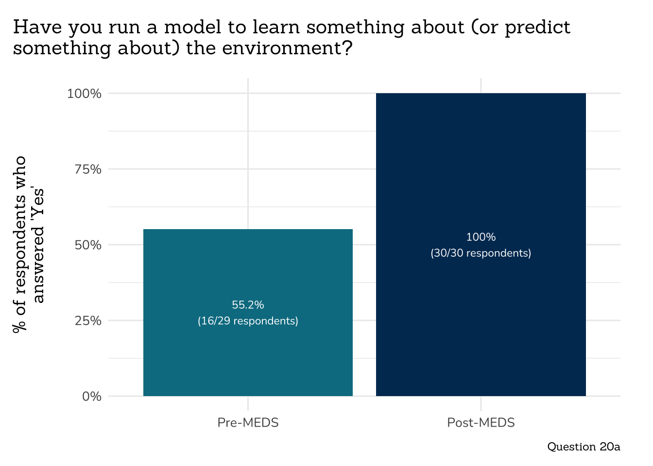 Post-MEDS: 30/30 student respondents (100%) answered “Yes” to Question 20a, and therefore were directed to answer Question 20b.