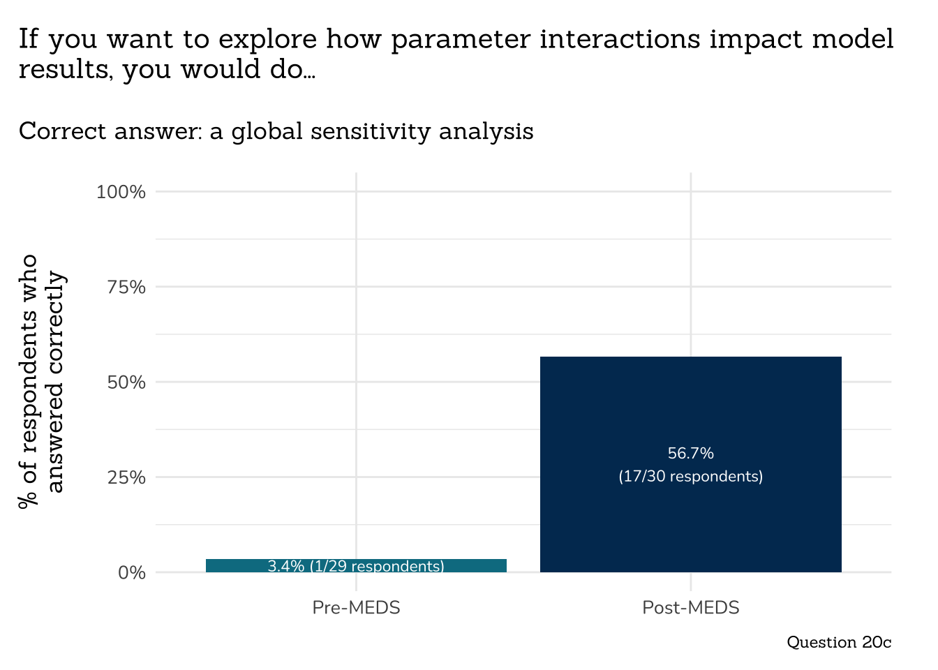 Post-MEDS: 30/30 student respondents (100%) answered “Yes” to Question 20b, and therefore were directed to answer Question 20c.