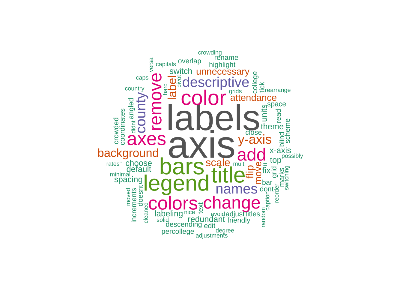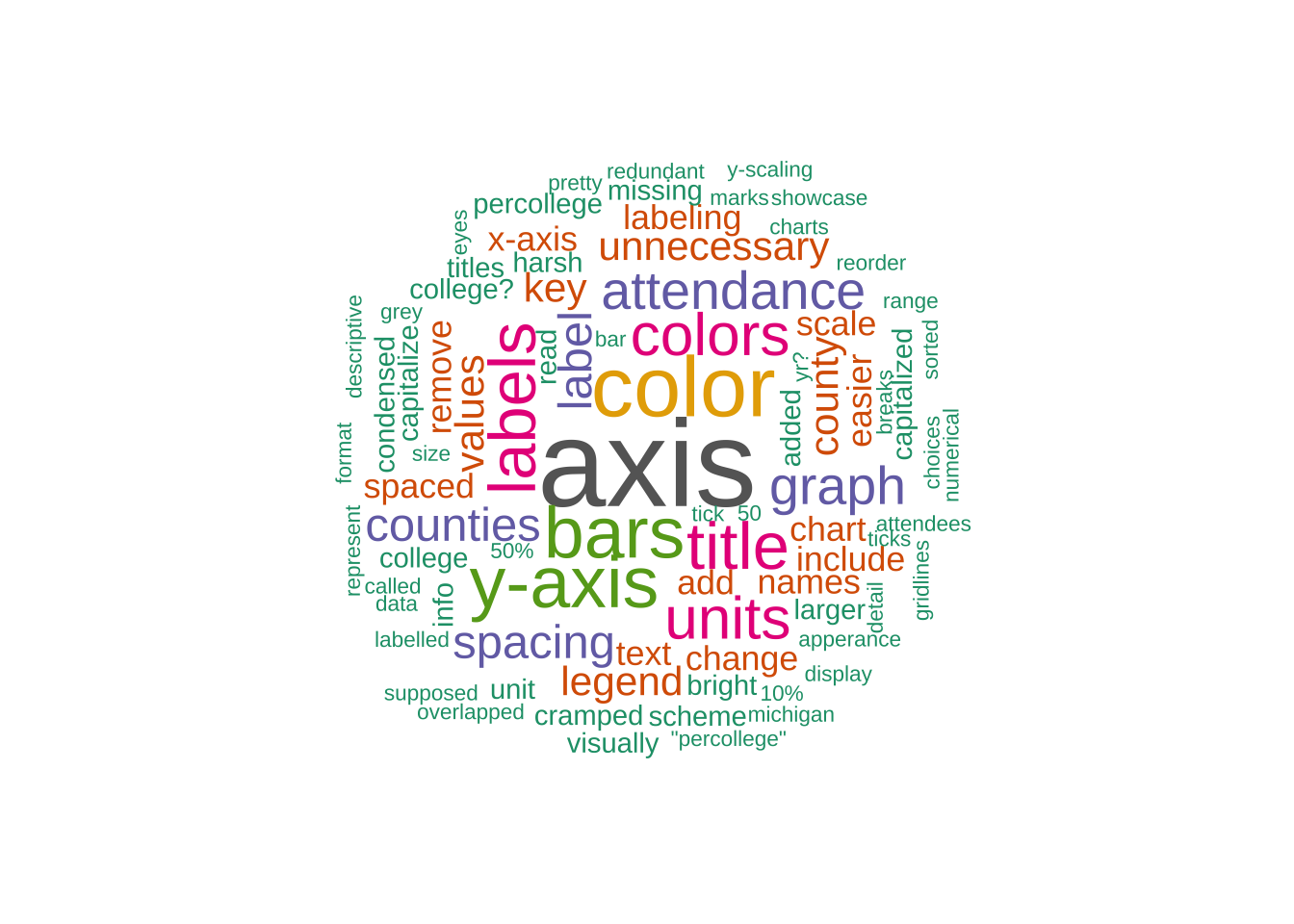 Wordcloud of most frequently occurring words used to describe suggested improvements to the above data visualization (Question 30)