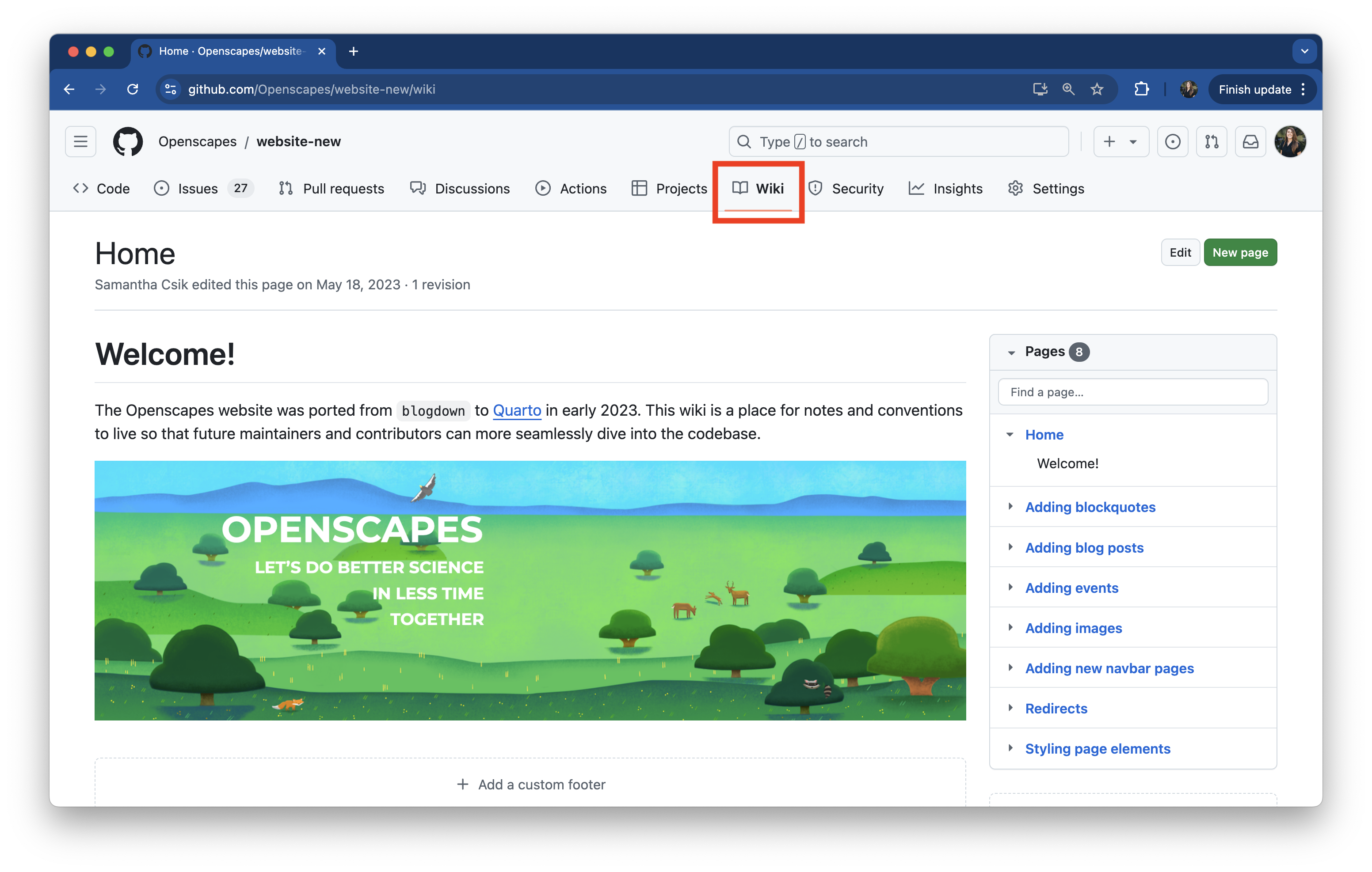 “You can use your repository’s wiki to share long-form content about your project, such as how to use it, how you designed it, or its core principles”