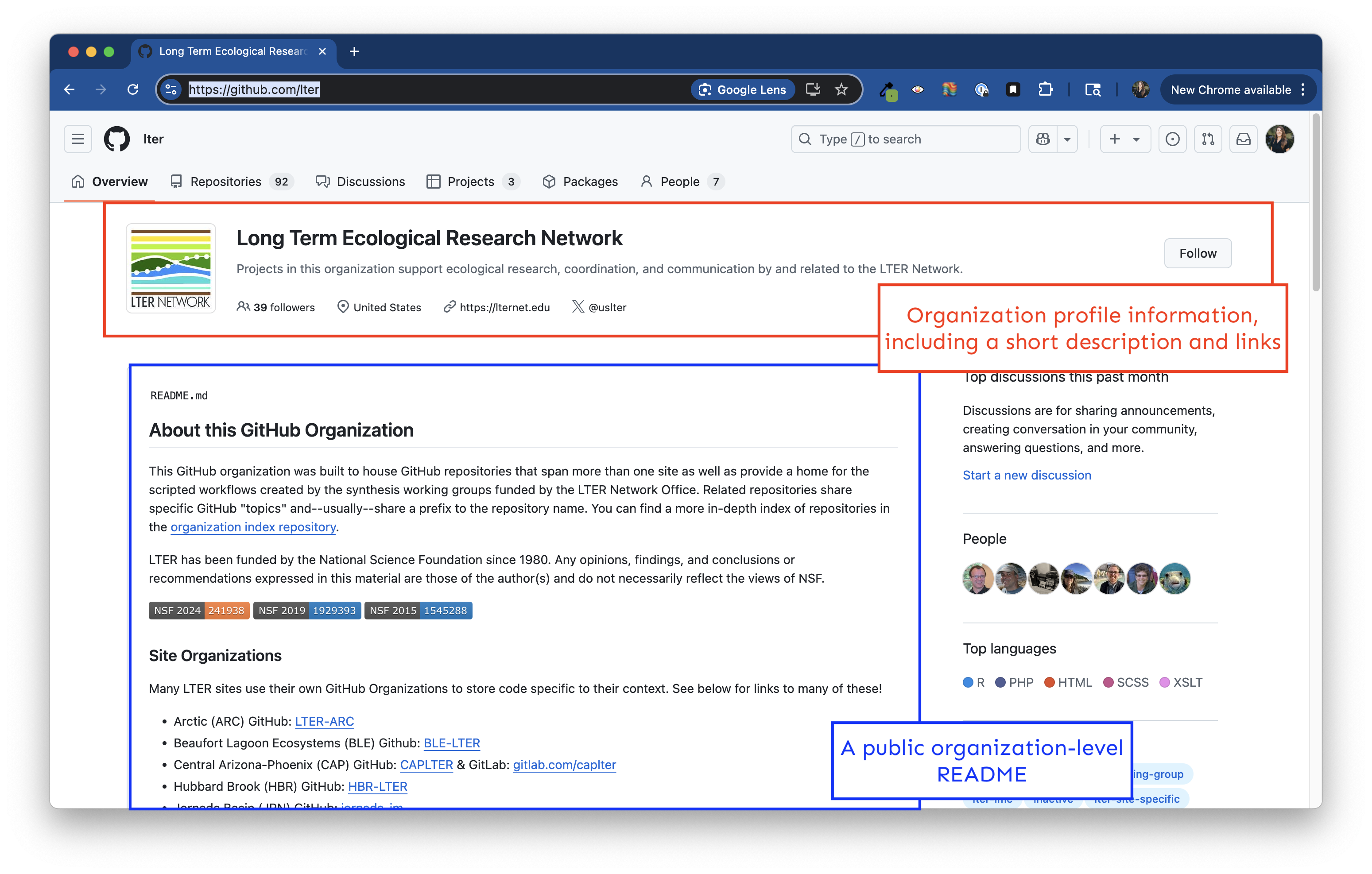 READMEs aren’t just for repositories – we can create account-level READMEs to introduce individual users or organizations: