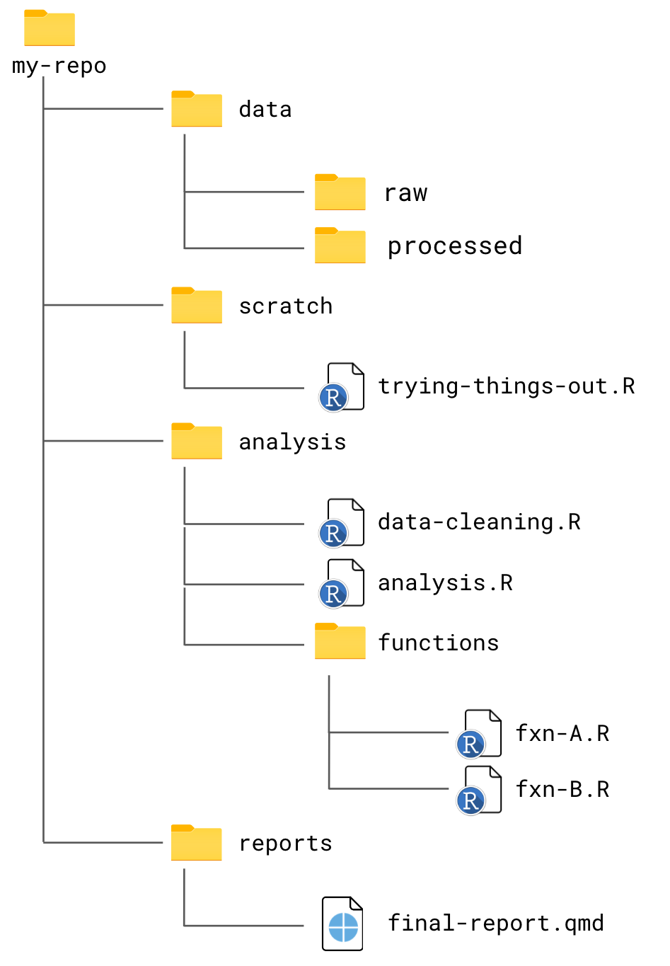 Here’s one example of an intuitive repo structure – this will vary depending on your project: