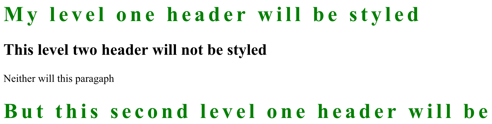 <h1 class="title">this is an `<h1>` element of class `title`</h1>