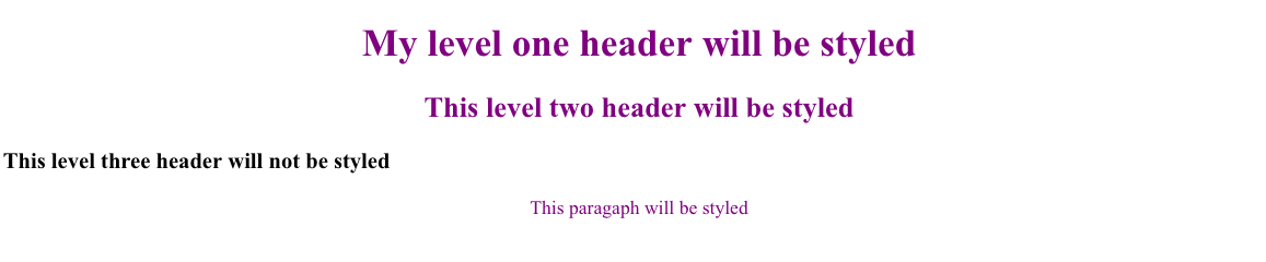 For example, let’s make any text elements that are assigned the class, .title, the color maroon: