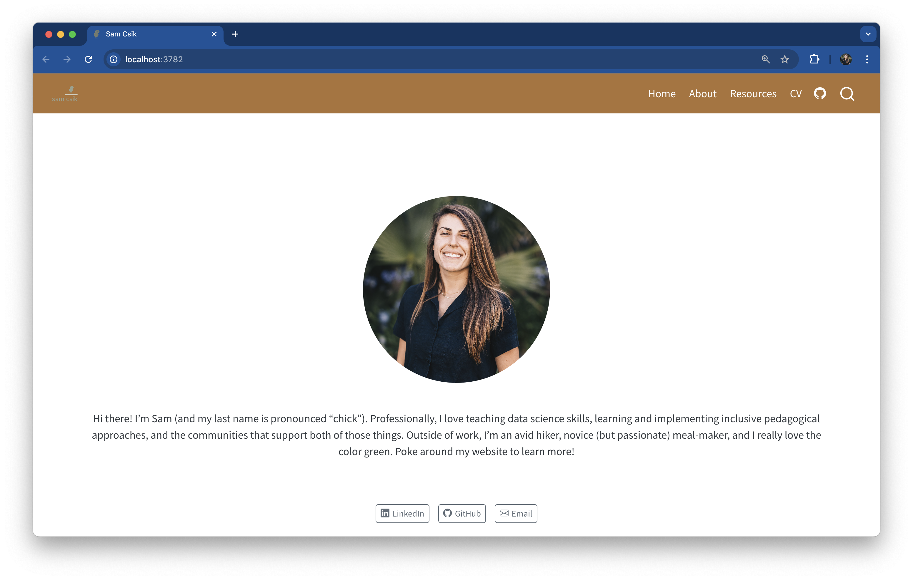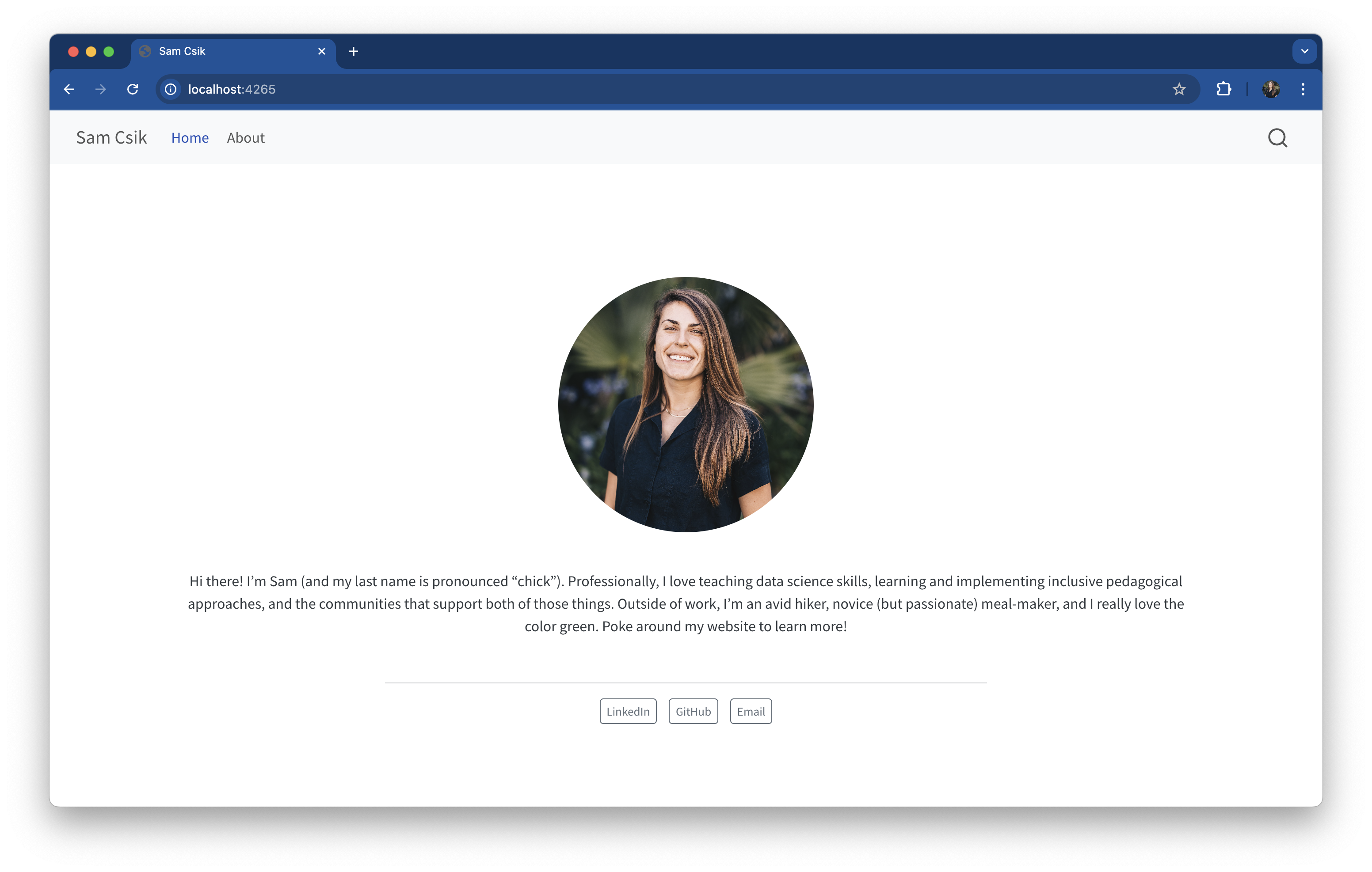 # title: "Samantha Csik" # optional (omitted in example screenshots); this title appears under your photo