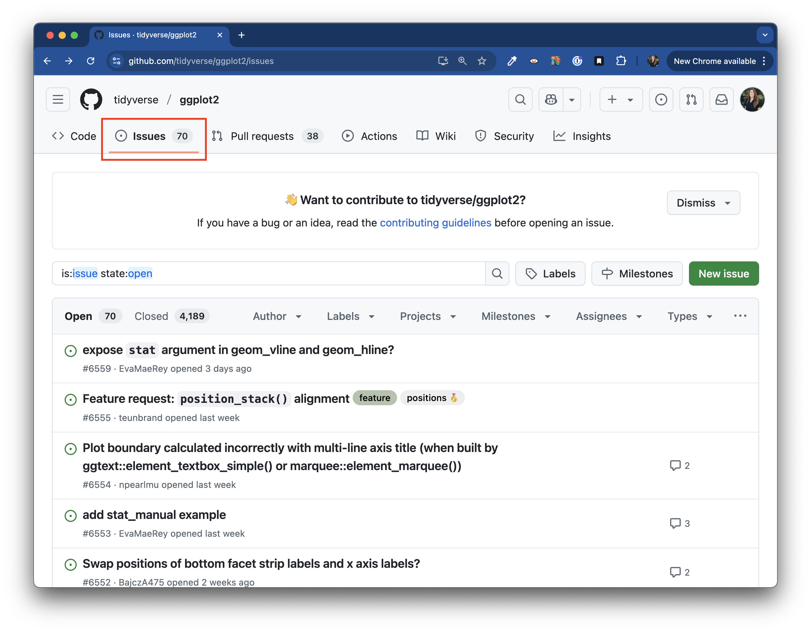 The source code for most (if not all) of your favorite data science software (e.g. packages / libraries) lives on GitHub. Check for known issues or fixes underway by exploring open issues and pull requests. Some repositories may also include additional documentation or examples using wikis (e.g. see the {xaringan} wiki).