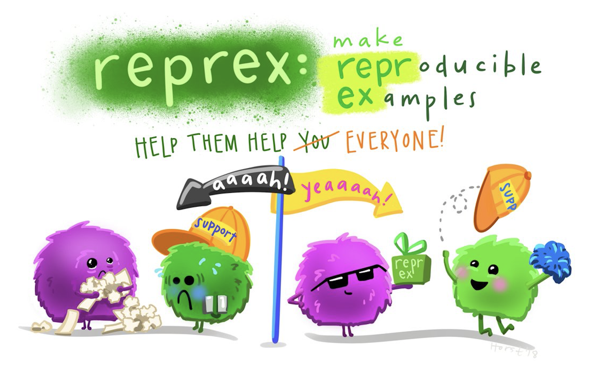 Check out FAQ: How to do a minimal reproducible example (reprex) for beginners and Reprex do’s and dont’s to get started on creating your first reprex.